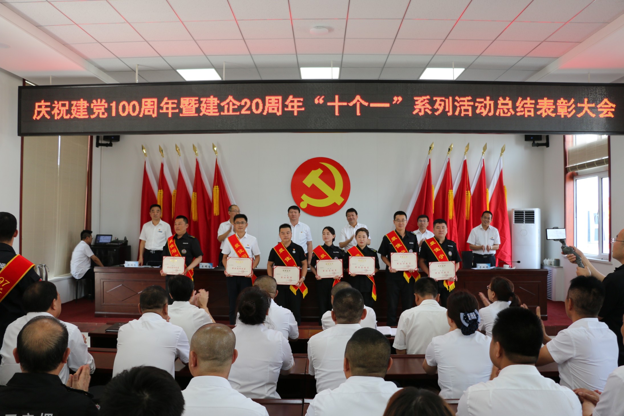 集團(tuán)公司黨委委員邢春生同志宣讀了《關(guān)于表彰集團(tuán)公司慶祝建黨100周年暨建企20周年“十個一”系列活動獲獎集體、獲獎個人的決定》;黨委委員、副總經(jīng)理王明生同志向大會通報(bào)了今年上半年受到上級表彰的先進(jìn)集體和個人。
