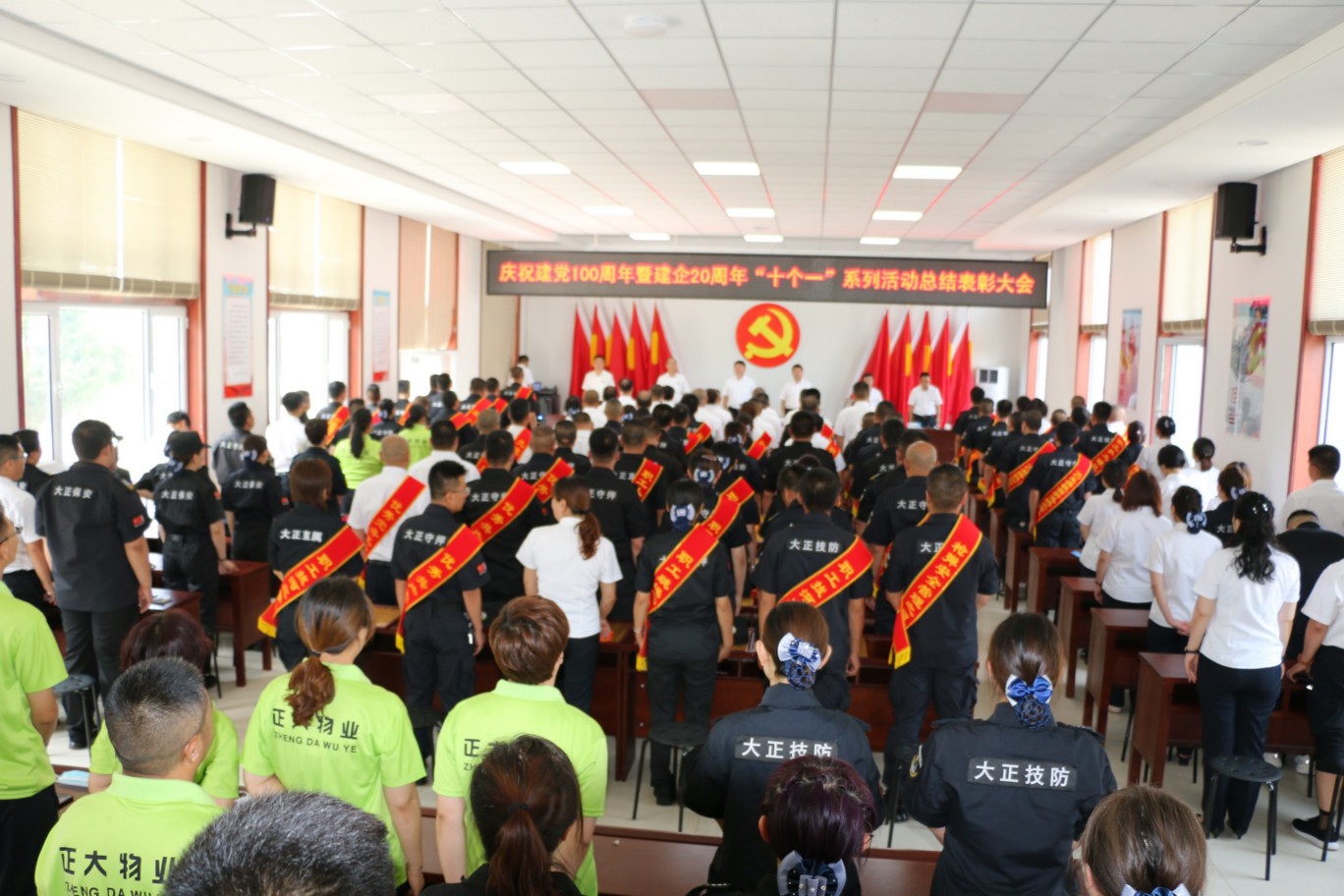 為熱烈慶祝中國共產(chǎn)黨成立100周年,頌揚(yáng)黨的光輝歷程,謳歌黨的豐功偉業(yè),傳承黨的優(yōu)良傳統(tǒng)和回顧公司發(fā)展歷程,不斷激發(fā)和進(jìn)一步激勵廣大黨員、干部職工統(tǒng)一意志、團(tuán)結(jié)拼搏,創(chuàng)先爭優(yōu)的奮斗熱情,實(shí)現(xiàn)公司更好更快發(fā)展、全面完成全年各項(xiàng)目標(biāo)任務(wù),6月30日上午,中共山西大正保安服務(wù)集團(tuán)有限公司委員會隆重召開慶祝建黨100周年暨建企20周年“十個一”系列活動總結(jié)表彰大會,公司班子成員、中層以上領(lǐng)導(dǎo)、受表彰的先進(jìn)集體代表和先進(jìn)個人、2020—2021年度新發(fā)展黨員共計(jì)160余人參加會議,大會由集團(tuán)公司黨委委員、副總經(jīng)理王明生同志主持。