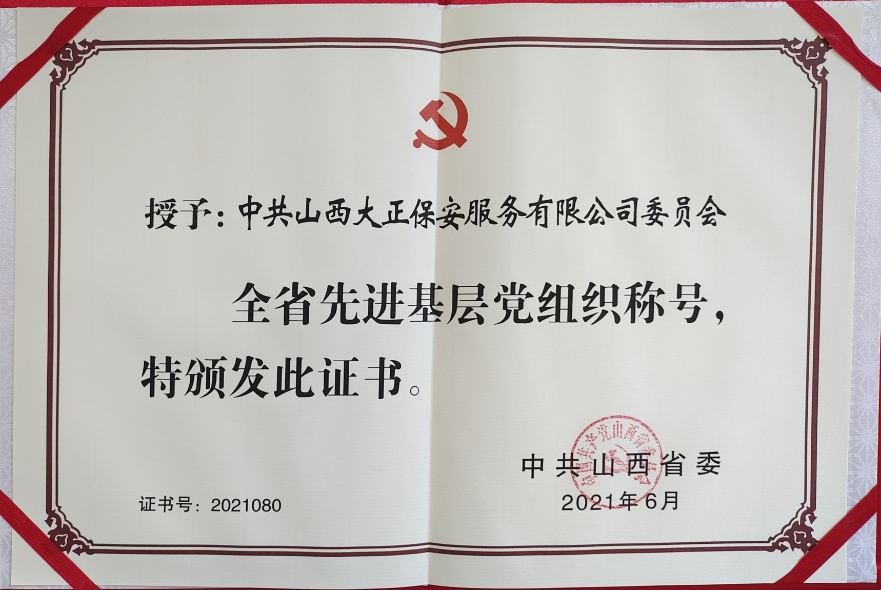 6月22日,在即將迎來中國共產(chǎn)黨百年華誕之際,山西省“兩優(yōu)一先”表彰大會(huì)在太原隆重召開。會(huì)上,中共山西大正保安服務(wù)集團(tuán)有限公司委員會(huì)被中共山西省委授予“全省先進(jìn)基層黨組織”榮譽(yù)稱號(hào)。會(huì)議以電視電話會(huì)議形式召開,集團(tuán)公司黨委副書記、副總經(jīng)理陳志平代表集團(tuán)公司黨委在忻州分會(huì)場(chǎng)參會(huì)并領(lǐng)取獎(jiǎng)牌及榮譽(yù)證書。