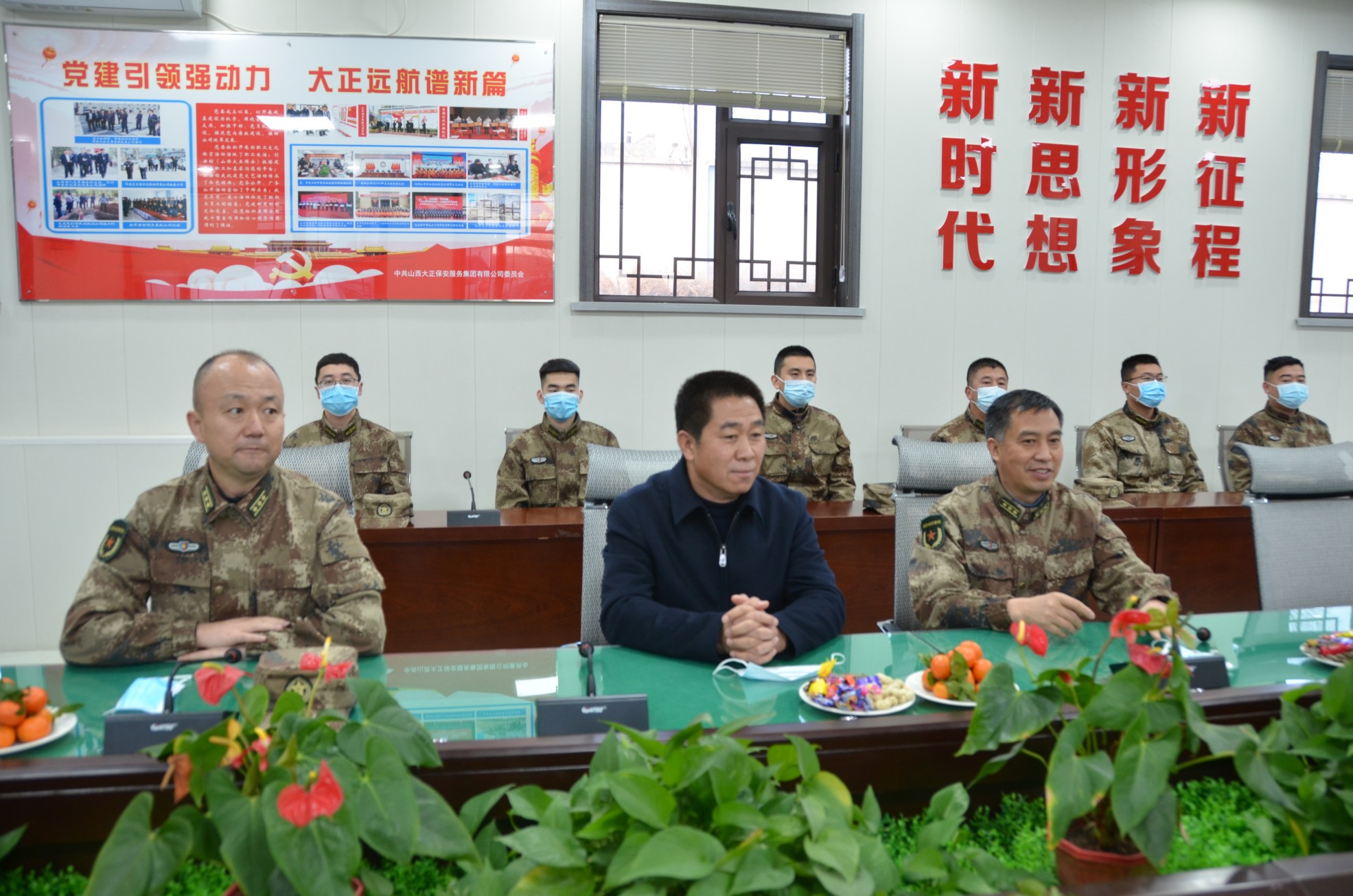 在春節(jié)即將到來之際,為營造關(guān)心支持國防和軍隊建設(shè)的濃厚社會氛圍,傳遞上級黨委、政府的關(guān)心關(guān)愛,1月29日,忻府區(qū)委常委、常務(wù)副區(qū)長孫曉磊,忻府區(qū)人武部政委劉啟國、部長李強一行蒞臨我公司進行節(jié)前慰問,為物業(yè)公司民兵應(yīng)急連隊員帶來了新春祝福和慰問品。集團公司領(lǐng)導(dǎo)班子成員趙培宏、王明生、呂雙明參加慰問座談活動。