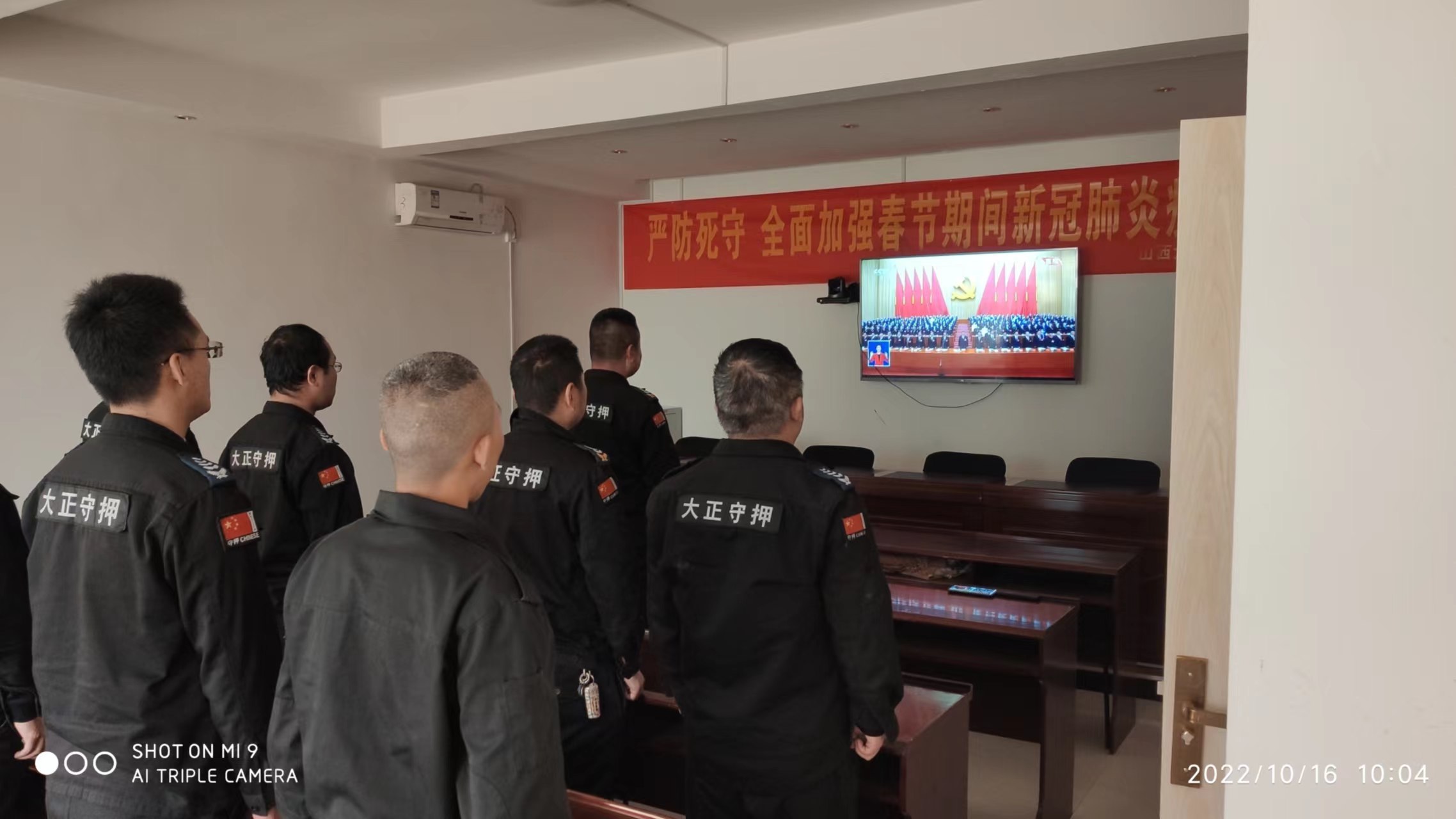 10月16日上午10時(shí),山西大正保安服務(wù)集團(tuán)有限公司組織全體黨員干部職工集中收看了中國(guó)共產(chǎn)黨第二十次全國(guó)代表大會(huì)開幕會(huì)實(shí)況,認(rèn)真聆聽習(xí)近平總書記代表十九屆中央委員會(huì)向大會(huì)作的報(bào)告。