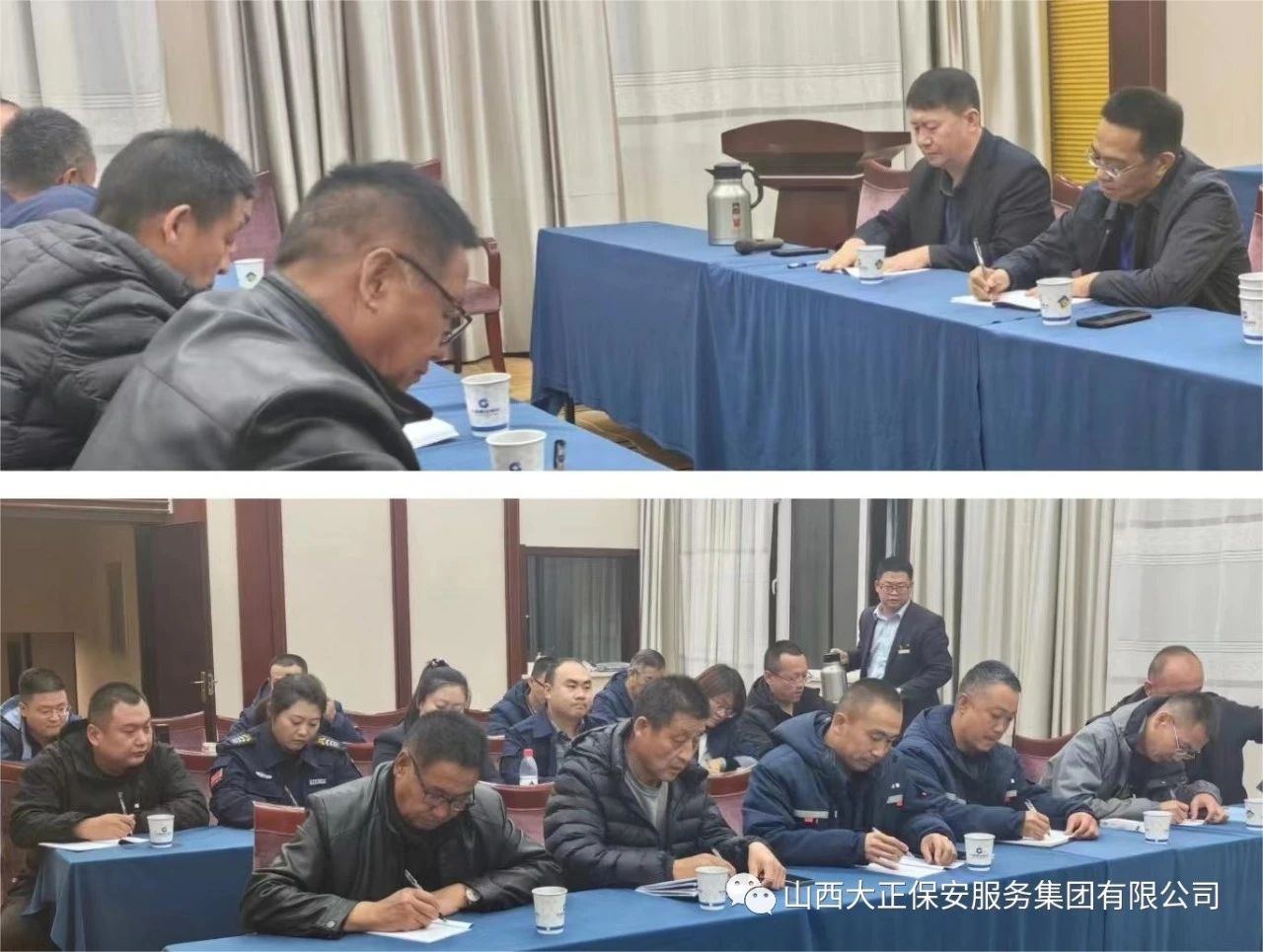 為深入貫徹落實省、市領(lǐng)導重要指示批示精神,確保公司安全運行無事故,山西大正保安服務(wù)集團有限公司召開安全生產(chǎn)工作安排部署會議,進一步提升安全防范意識和管理水平,樹牢安全發(fā)展理念,扎實推進安全風險治理,壓實安全生產(chǎn)責任,堅決遏制重特大事故,夯實安全基礎(chǔ)。會上,集團公司黨委委員、分管安全副總經(jīng)理王明生作了具體安排和部署。