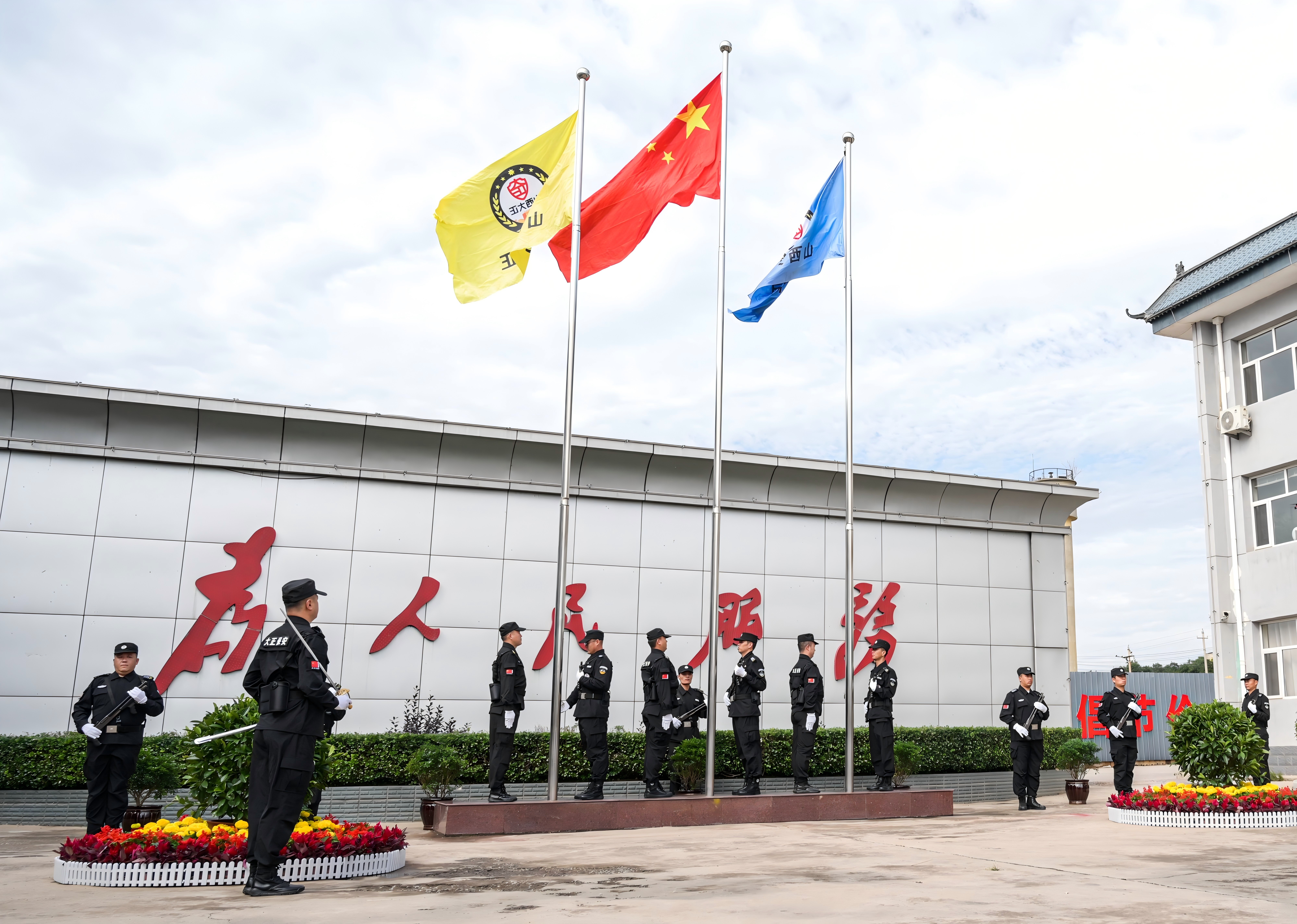 節(jié)日的公司院內(nèi)外,四周花團(tuán)錦簇,大門口燈籠高掛、彩旗飄揚(yáng),為節(jié)日增添了濃厚的喜慶氛圍。公司運(yùn)鈔車、巡邏車、運(yùn)兵車干凈整潔,排列在場地兩側(cè),升旗儀式更顯隆重。9時30分,集團(tuán)公司、各子公司領(lǐng)導(dǎo)和機(jī)關(guān)各部門、城區(qū)員工共300多人整齊列隊(duì),懷著激動的心情,手持小國旗,臉上貼著愛國貼紙、洋溢幸福的笑容,眼神中充滿了對祖國的熱愛和對升旗儀式的期待。