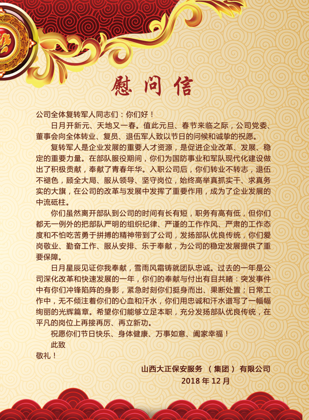 致復(fù)轉(zhuǎn)軍人慰問(wèn)信