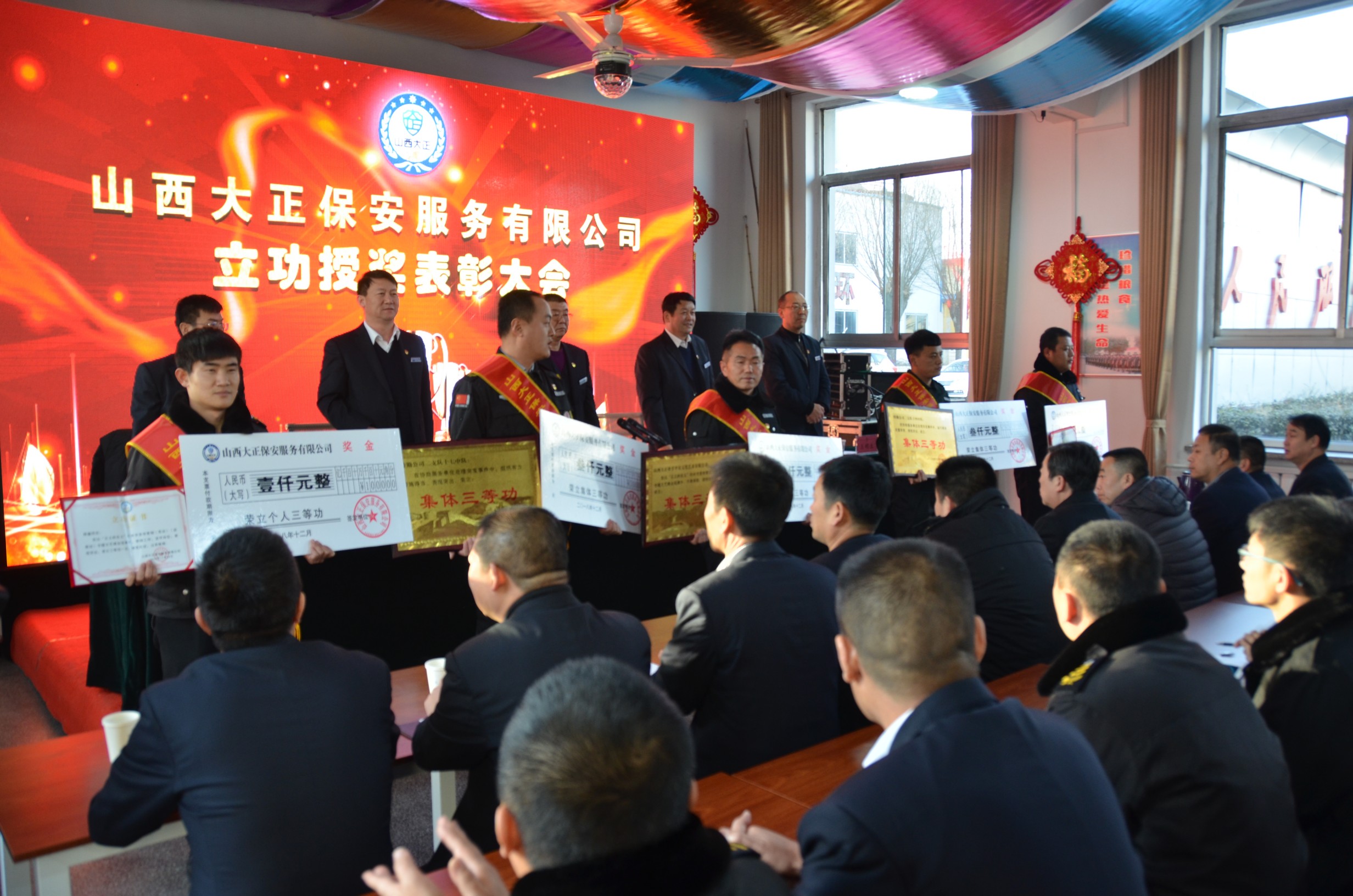會上,黨委委員、副總經(jīng)理趙培宏宣讀《山西大正保安服務(wù)有限公司關(guān)于為2018年度先進(jìn)集體、個人記功的決定》。與會領(lǐng)導(dǎo)為榮立三等功的先進(jìn)集體牽手平安文化藝術(shù)有限公司、忻州保安服務(wù)公司特勤公司二支隊十七中隊、忻州保安服務(wù)公司特勤公司二支隊十四中隊和榮立三等功的先進(jìn)個人李振瑋、韓鑫進(jìn)行頒獎。特勤公司二支隊副支隊長李濤作為立功代表進(jìn)行表態(tài)發(fā)言。