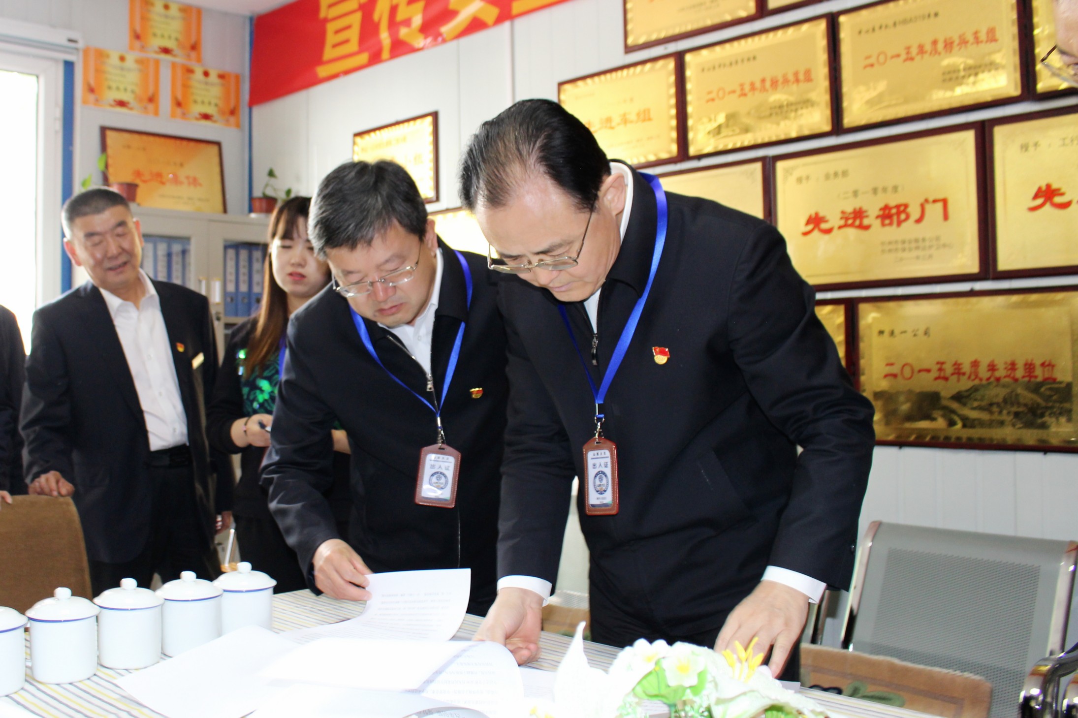 山西省人大常委會副主任、忻州市委書記李俊明在認真查看公司黨員學(xué)習(xí)筆記