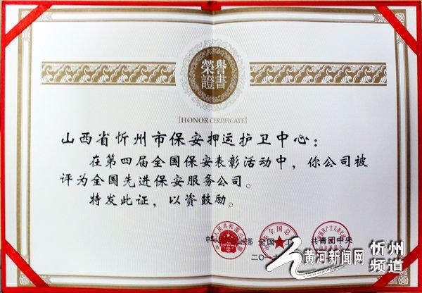近年來,在市委、市政府和市國資委的正確領(lǐng)導(dǎo)下,在市公安局的高效監(jiān)管下,忻州市保安押運(yùn)護(hù)衛(wèi)中心各項(xiàng)工作進(jìn)展順利,獲得了山西省五一勞動(dòng)獎(jiǎng)狀、山西省五四紅旗團(tuán)委、山西省先進(jìn)保安服務(wù)公司、山西省優(yōu)秀企業(yè)、山西省青年文明號(hào)、山西省納稅樣本企業(yè)、2015年山西省服務(wù)業(yè)企業(yè)80強(qiáng)等一系列榮譽(yù)表彰。公司將以榮獲公安部、全國總工會(huì)、共青團(tuán)中央聯(lián)合授予的“第四屆全國先進(jìn)保安服務(wù)公司”榮譽(yù)稱號(hào)為新起點(diǎn),再接再厲,繼續(xù)圍繞“創(chuàng)建一流保安、押運(yùn)企業(yè)”的奮斗目標(biāo),大力發(fā)揚(yáng)“服從大局、服務(wù)社會(huì)、創(chuàng)新發(fā)展”的企業(yè)精神,為全面推進(jìn)公司健康、安全、快速發(fā)展,維護(hù)全市經(jīng)濟(jì)繁榮發(fā)展、社會(huì)和諧穩(wěn)定譜寫新的篇章。