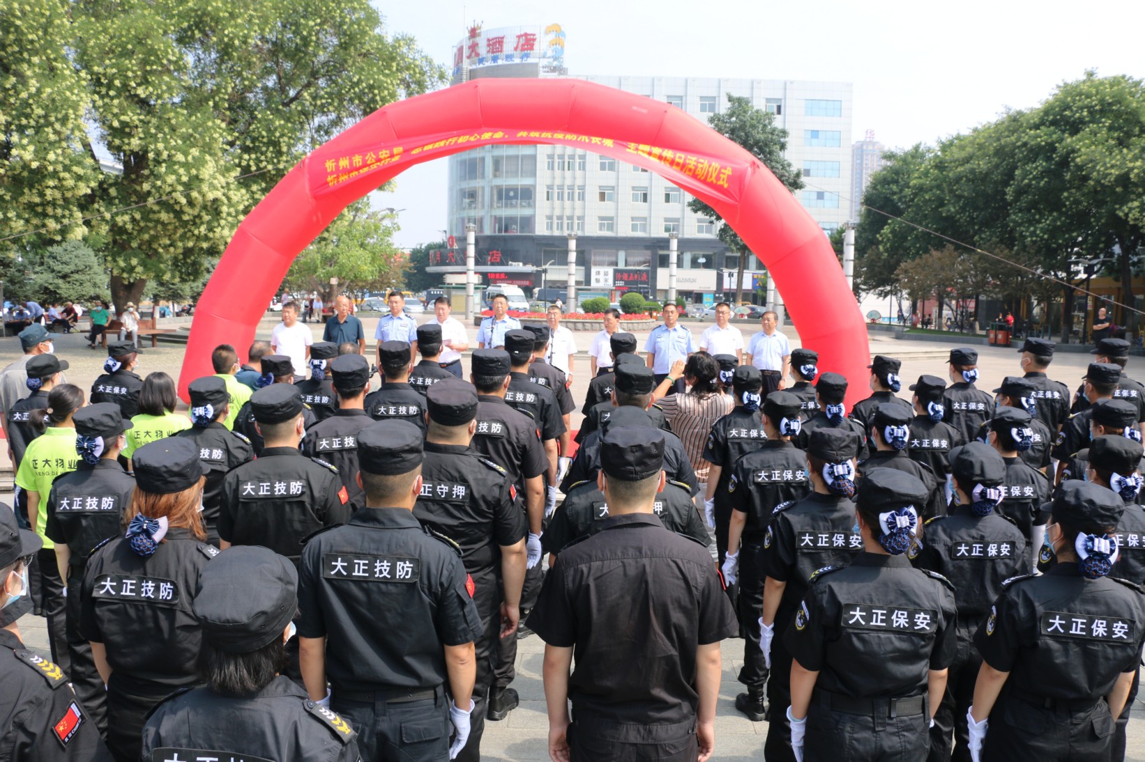 2020年7月24日,是第二個全國保安主題宣傳日,為充分展示忻州保安行業(yè)風采,忻州保安行業(yè)在城區(qū)日月廣場舉行“忠誠踐行初心使命、共筑抗疫防汛長城”主題宣傳日活動。忻州市公安局、忻州市保安協(xié)會、忻州市公安局直屬分局、忻州市公安局忻府分局、山西大正保安服務(wù)有限公司及全市11家保安企業(yè)負責人、保安隊員代表120余人參加活動。