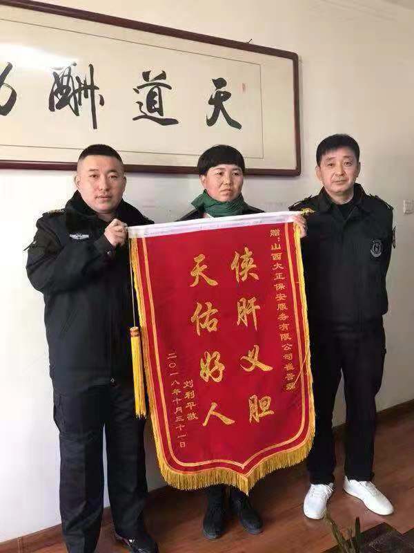 10月31日上午,阿姨拿著一面寫著“俠肝義膽、天佑好人”錦旗送到公司,并哭著對大家說:真要謝謝這個(gè)好同志對我的體諒和幫助,正是這樣優(yōu)秀的公司才能培養(yǎng)出道德高尚、人品過硬、助人為樂的人才。