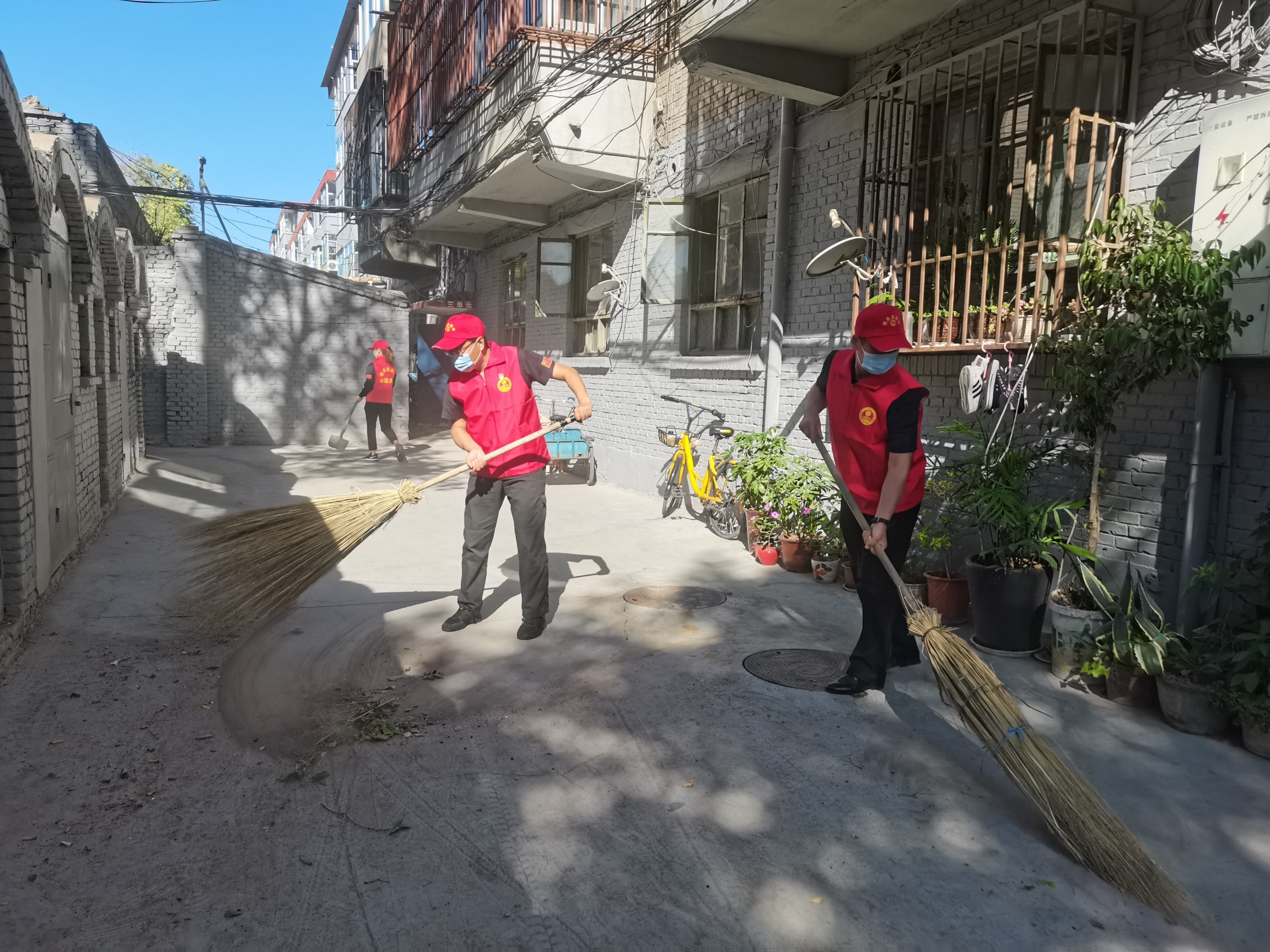 時值九月,太陽還是炙熱的烘烤著大地,我公司志愿者頂著炎炎烈日在小區(qū)內(nèi)進(jìn)行衛(wèi)生大清掃,志愿者對小區(qū)的墻面進(jìn)行了清理,粘貼在墻面上的小廣告由于時間久,難以清理,志愿者們手持鏟子進(jìn)行細(xì)致的處理。墻面上面噴印的小廣告,志愿者們用清水進(jìn)行了清理;洗刷墻壁完畢,志愿者們攜帶掃帚,鐵鍬、垃圾袋等清掃工具對院子里面的路面、樓道、死角的白色垃圾、廢棄堆放物等進(jìn)行集中、徹底的清理清運;志愿者們手拿抹布對小區(qū)的樓門和樓梯欄桿進(jìn)行了一絲不茍的擦拭;金秋時節(jié),院子里面的落葉較多,自愿者們專門對地面上面的落葉進(jìn)行了集中清理;由于屬于老舊小區(qū),自行車、電動車亂,沒有專門的區(qū)域進(jìn)行自行車、電動車的停放,志愿者們在小區(qū)內(nèi)專門劃了自行車、電動車停放區(qū),使自行車、電動車停放有序,讓整個環(huán)境看起來更加干凈整潔。