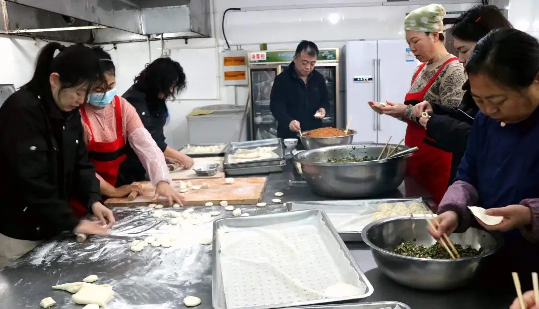 一大早,集團公司的食堂里就熱鬧了起來,并已精心準備好了食材,員工們井然有序的開始了“工作”,有的搟皮、有的揪面團、有的包餡兒,各顯身手,最后呈現(xiàn)出各式各樣的餃子。職工們開心地交流,認真地操作,時而探討心得,忙活的熱火朝天,每個人臉上都洋溢著燦爛的笑容。不一會兒的功夫,一排排獨具個性的餃子很快就擺滿了一個個餐盤,大家體驗著協(xié)作的樂趣,感受著節(jié)日的溫情,好一幅冬日溫馨的“全家福”。