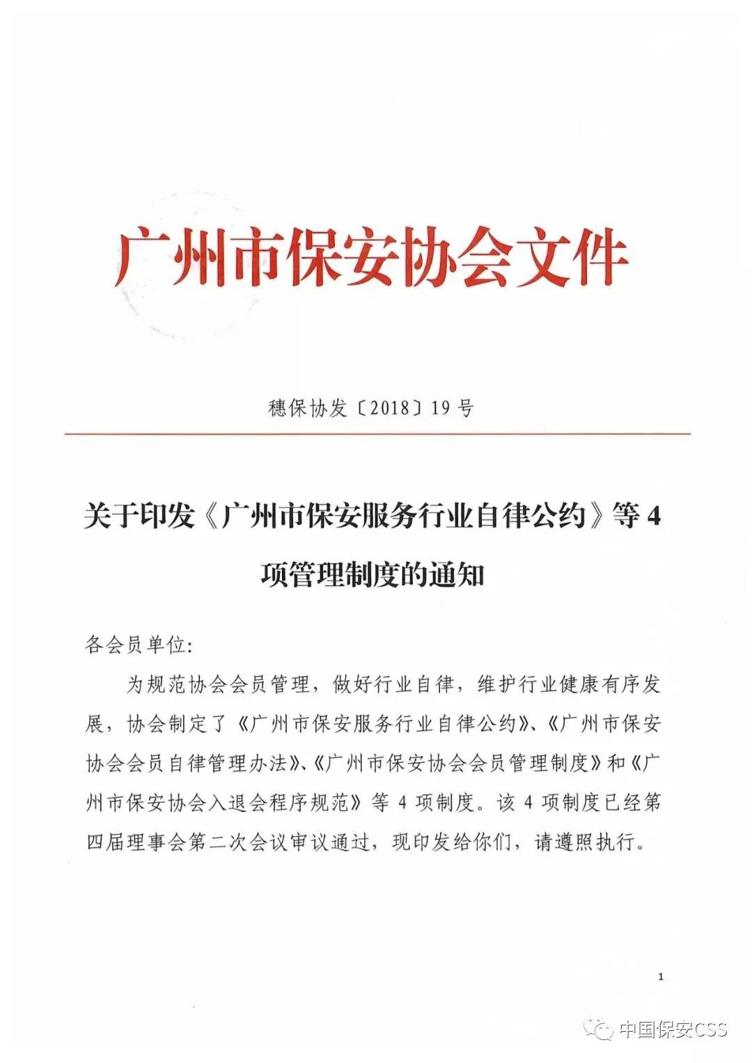 廣州市保安協(xié)會(huì)印發(fā)行業(yè)自律公約等4項(xiàng)管理制度