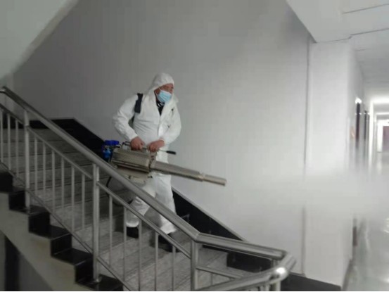 會后億通公司立即與藍(lán)天救援隊聯(lián)系,采用彌霧器等專用消毒設(shè)備,利用下班時間人員不在辦公場所時間,為兄弟單位、食堂進(jìn)行了全覆蓋、無死角、高強度的全面消毒。