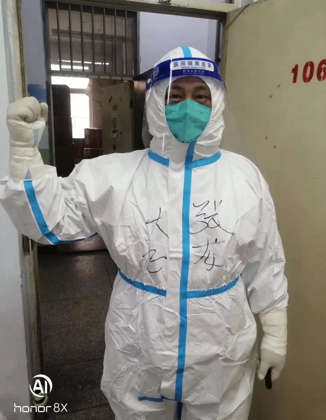 11月16日晚上6點(diǎn),是他們第一次穿著防護(hù)服進(jìn)入隔離區(qū)為隔離人員高風(fēng)險(xiǎn)近距離服務(wù)。關(guān)向宇同志身體高大肥胖,穿脫防護(hù)服要比常人艱難的多,為盡職責(zé)完成任務(wù),自己克服困難,知難而上,跨入隔離區(qū)。二人在隔離區(qū)服務(wù)近四個(gè)小時(shí),出來(lái)時(shí)滿身流著汗水,第二天兩人都發(fā)生了身體不適狀況,身體發(fā)冷、咳嗽等癥狀,但是他們沒有畏縮,提振精神,繼續(xù)馬不停蹄的干活,該干啥干啥,該做什做什,忙里又忙外。