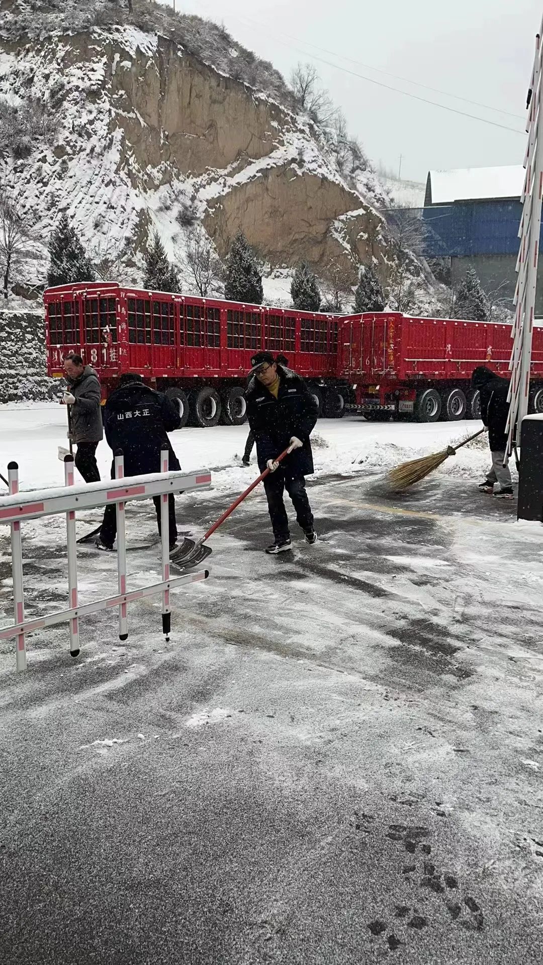在集團(tuán)公司總部,大家齊心協(xié)力清掃積雪,道路上、臺(tái)階上大家忙碌的身影,成為雪中一道靚麗的風(fēng)景線?偨(jīng)理助理宋林兔現(xiàn)場(chǎng)指揮車輛有序轉(zhuǎn)移,經(jīng)過不懈的努力,道路漸漸地現(xiàn)出了“原貌”。