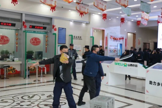 根據(jù)市公安局、銀保監(jiān)局、省市聯(lián)社關(guān)于2023年銀行業(yè)突發(fā)事件應(yīng)急預(yù)案演練文件精神,忻州市農(nóng)商銀行于4月1日按照演練方案,對(duì)防爆、防搶、防劫持人質(zhì)等15項(xiàng)突發(fā)事件應(yīng)急處置進(jìn)行演練,忻州市公安局內(nèi)保、巡特警支隊(duì)、直屬分局治安大隊(duì)、七一北路派出所及15余名公安干警和大正保安集團(tuán)20余名守押、安保隊(duì)員參加。