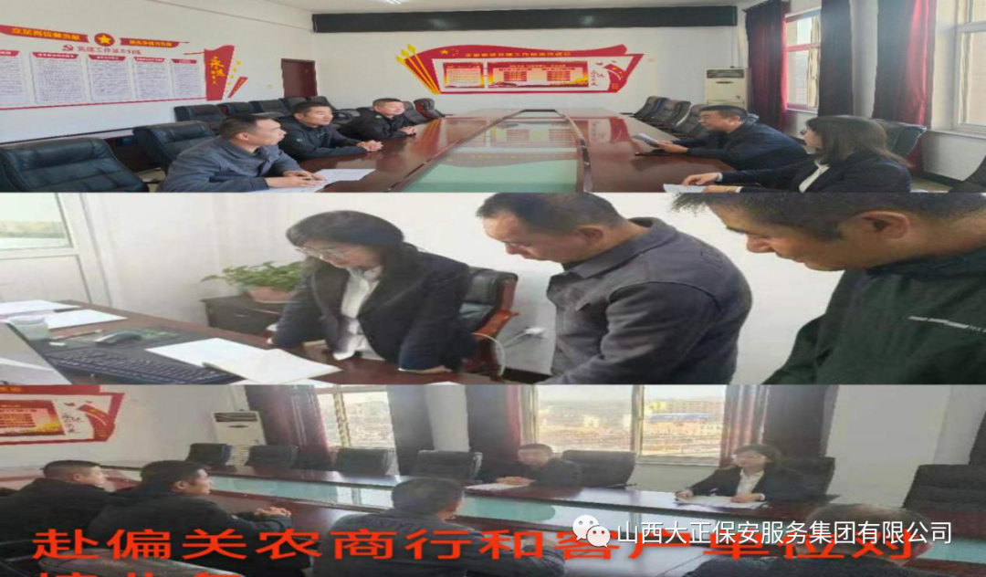 人防公司副經(jīng)理樊杰前往忻州市浦發(fā)銀行進(jìn)行走訪,與客戶單位就近期保安工作進(jìn)行溝通,了解保安員的執(zhí)勤工作情況,檢查著裝情況,要求隊員提高安全意識,保持良好精神面貌,盡心盡力干好安保工作。