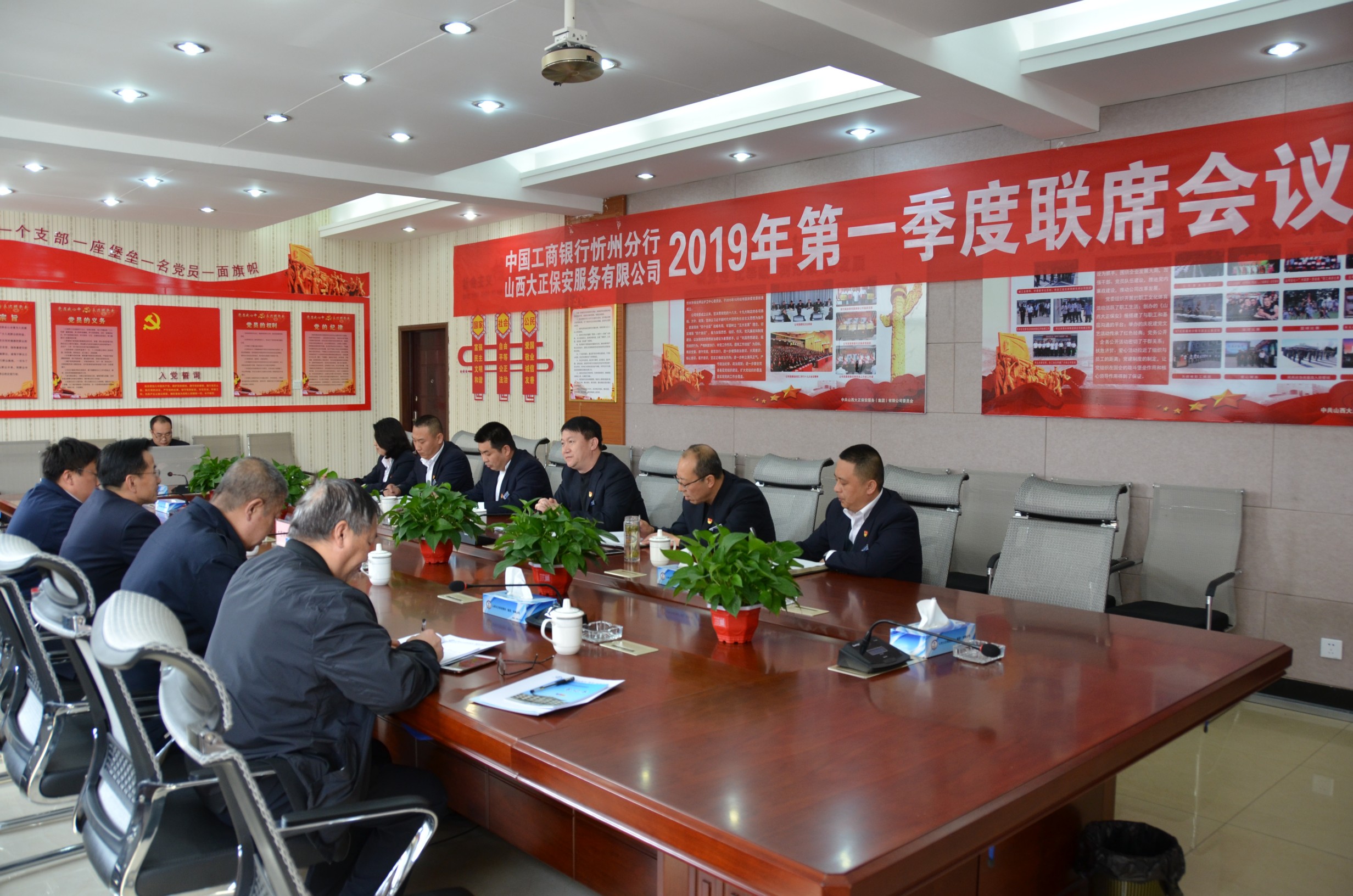 3月29日,公司與工行忻州分行召開2019年第一季度聯(lián)席會議。黨委委員、副總經(jīng)理趙培宏主持會議,工行忻州分行紀檢書記李榮杰,內(nèi)控安全保衛(wèi)部副經(jīng)理徐軍及公司黨委委員、副總經(jīng)理王明生,董事長助理、守押公司副總經(jīng)理寇星云等公司領(lǐng)導(dǎo)參加會議。