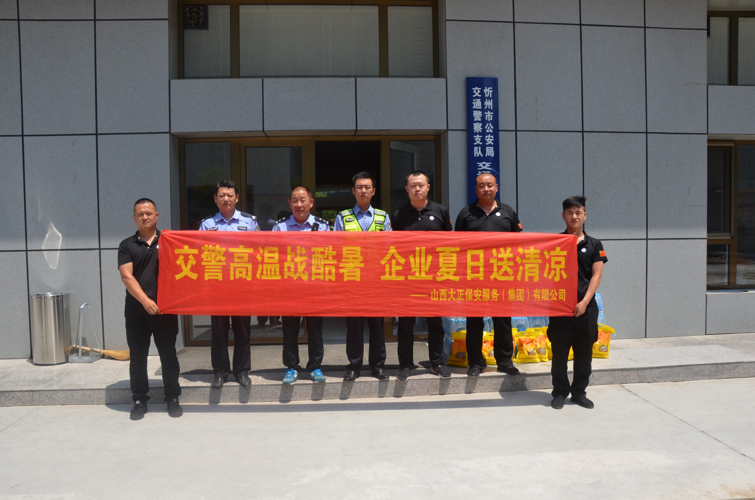 公司慰問人員對一線執(zhí)勤民警在高溫酷暑中堅守崗位,無私奉獻,全力保障市區(qū)道路安全暢通的工作精神表示由衷欽佩,各交警部門負責人對山西大正保安服務(集團)有限公司對交警部門工作的支持與配合表示感謝,表示將會立足本職,堅守崗位,為人民群眾的生命財產(chǎn)安全保駕護航,為城區(qū)道路的和諧穩(wěn)定貢獻自己的力量。