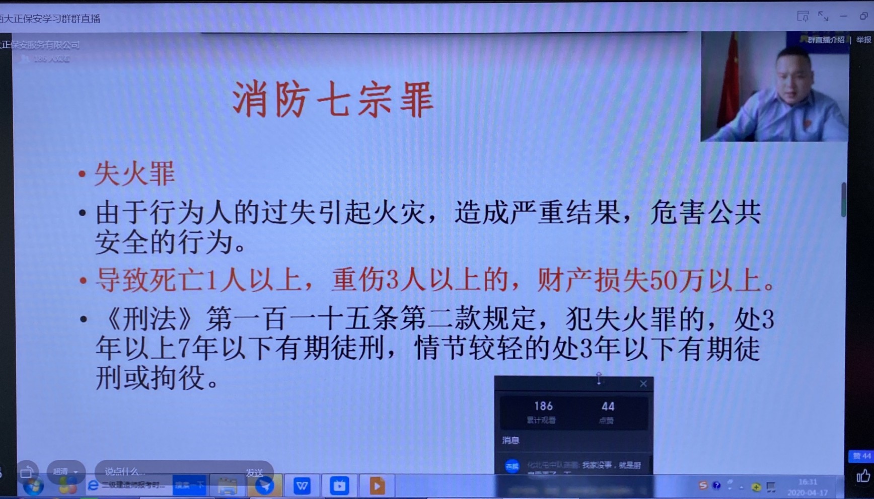 為響應(yīng)國家號召,貫徹“預(yù)防為主,防消結(jié)合”的方針,做到科學(xué)應(yīng)對,力求人人講安全,人人會安全。4月17日,公司特邀山西陽光眾安消防科技有限公司忻州分公司講師黃前對我公司員工進(jìn)行線上安全教學(xué)。公司機(jī)關(guān)干部、全體黨員等200余人參加。