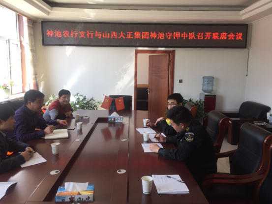 4月2日,守押神池中隊受邀與農(nóng)行神池支行召開聯(lián)席會議。該行主管安全保衛(wèi)工作的鄧步云書記主持會議,守押神池中隊中隊長、副中隊長、安全員和該行辦公室、營業(yè)部、ATM加清鈔等部門負責人參加會議。